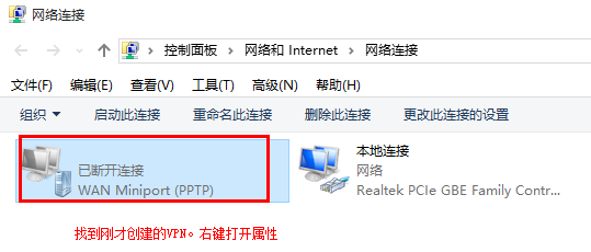 5、找到刚才创建的VPN,然后右键-属性
