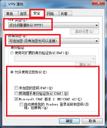 在安全 类型 那里修改为PPTP
