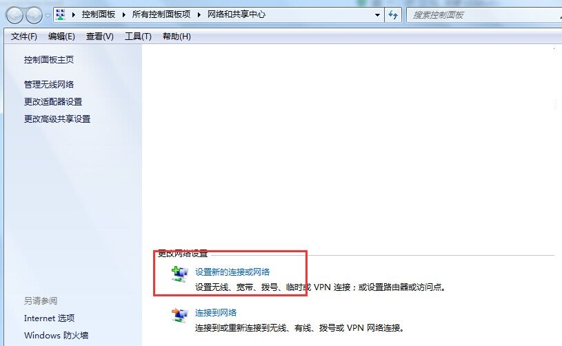 点击“设置新的连接或网络”